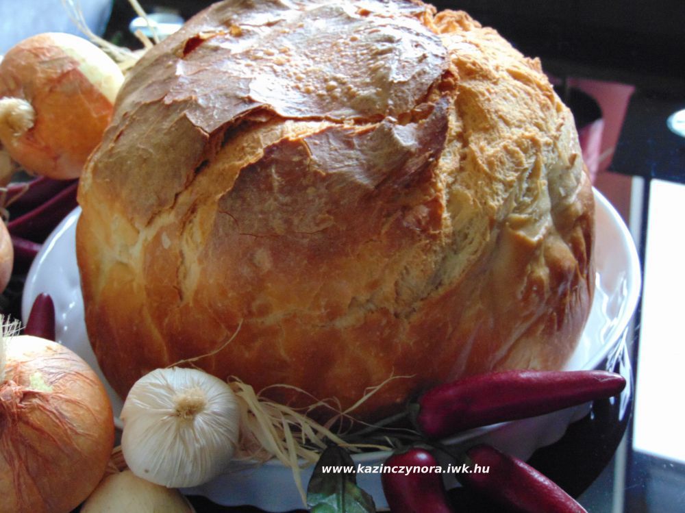 A sütőből kivéve egy ecset segítségével vízzel átkenjük a kenyeret. 30-40 perc múlva szép cserepes lesz és ha langyosra hűlt, megvághatjuk.