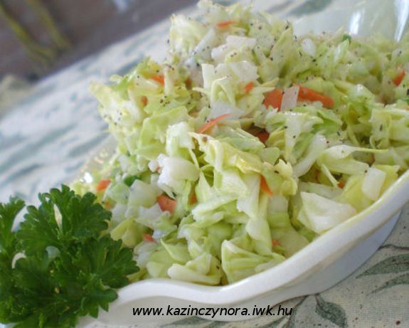 2 fej salátát leveleire szedjük meg mossuk majd egy tálba helyezzük .Veszünk 5 dl hideg vizet hozzáadunk ízlés szerint cukrot fehér borsot és 2o% étel ecetet, megkóstoljuk mikor kellemesen édes savanykás ráöntjük a salátalevélre, megforgatjuk benne, szórunk még rá egy marék kristálycukrot és tálalhatjuk a pörkölthöz,vagy különböző sűlt rántott ételekhez.