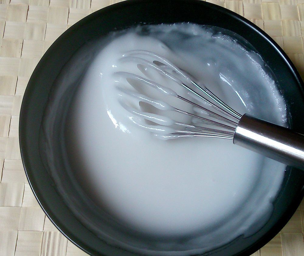 "Egy nagyobb edénybe beleöntjük a vizet és az ecetet, beletesszük a cukrot, felforraljuk. Addig főzzük, míg fehéren átlátszó és hólyagokat vet, majd a tűzről levéve kihűlésig keverjük."