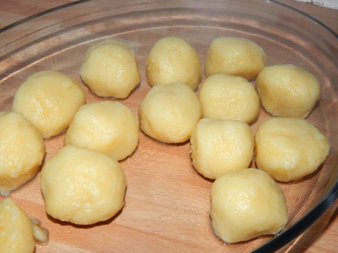 A burgonyákat meghámozzuk, felkockázzuk, bő sós vízben puhára főzzük. Ha megfőtt, akkor burgonyanyomóval áttörjük, hagyjuk kihűlni. Sózzuk, adunk hozzá annyi lisztet, amennyit felvesz, hogy ne ragadjon, összegyúrjuk. (Ez nekem eddig otthon 40-50 dkg volt, most az itt vásárolható burgonyához elég kevesebb is nekem, szóval függ a burgonyától és a liszttől is, hogy mennyi lisztet fog felvenni. Lehet kevesebbet, de lehet többet.) Kezünkkel gombócokat formálunk, (nekem 24 db nem túl nagy gombóc lett) majd forrásban lévő sós vízbe tesszük. Mikor feljönnek a gombócok a víz tetejére, akkor várunk még 3-5 percet és szűrővel kiszedjük őket. Az elkészült burgonyagombócot melegen tálaljuk a főétel mellé.