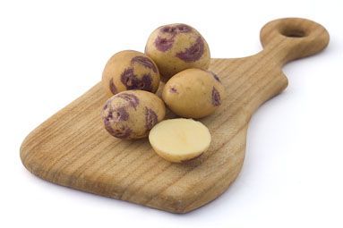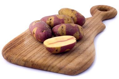 Blue belle A Blue belle egy új, francia nemesítésű fajta. Közepes és nagyméretű burgonyákat nevel, melyek a szemek körül lilán mosott színűek, leginkább úgy néznek ki, mintha állandóan mosolyognának. A gumók fehér húsúak, kellemes ízűek, közepes szárazanyagtartalmúak. Sütve és főzve is jól használható ("B" főzési kategóriába sorolható), eddig levesnek és pürének próbáltuk, kifejezetten finom volt mindkét felhasználásban. A héjról a lila szín főzéskor eltűnik, héjában sütve viszont még látszanak a foltok.